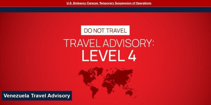 The US Embassy in Caracas this morning issued a Level 4 notice to American citizens, saying: “Do not travel to Venezuela for any reason.”