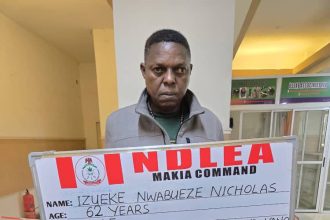 A 62-year-old Lagos-based businessman Nwabueze Nicholas Izueke has been arrested at the Mallam Aminu Kano International Airport (MAKIA) Kano by operatives of the National Drug Law Enforcement Agency (NDLEA) while heading to China with 95 jumbo-sized wraps of cocaine weighing 1.589 kilograms buried in his stomach.